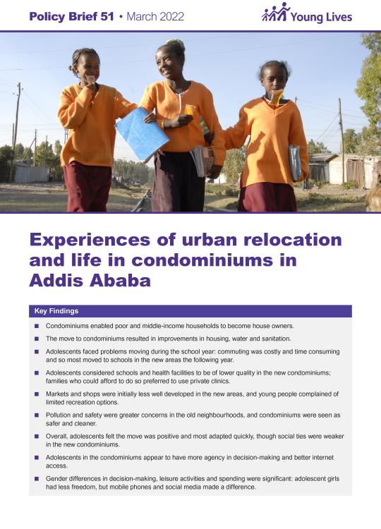 This brief assesses the research findings from a mixed methods study of the experiences of urban relocation in 3 communities Addis Ababa and suggests a set of recommendations.