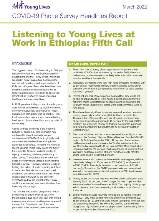 This brief report provides headline findings from the fifth call in Young Lives at Work's COVID-19 Phone Survey in Ethiopia,