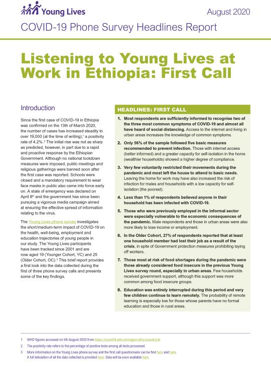 This brief report provides a first look into the data collected during the first of three calls in Young Lives at Work's Phone Survey in Ethiopia and presents some of the key findings.x